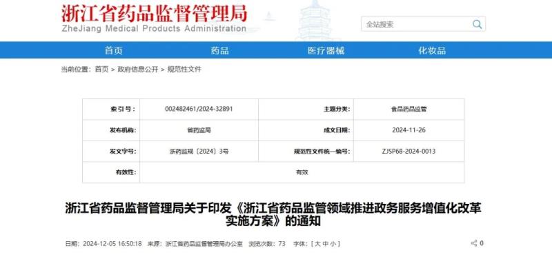 12月5日,浙江省藥監(jiān)局發(fā)布《浙江省藥品監(jiān)管領(lǐng)域推進政務(wù)服務(wù)增值化改革實施方案》(以下簡稱《實施方案》),以縱深推進藥品監(jiān)管領(lǐng)域政務(wù)服務(wù)增值化改革。《實施方案》從“審評審批再提速、監(jiān)管模式再提效、服務(wù)機制再提質(zhì)、保障支撐再提標(biāo)”四大部分,共計提出18條具體舉措。