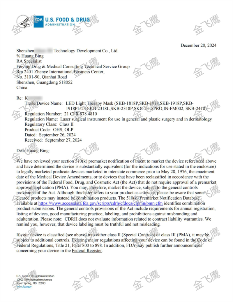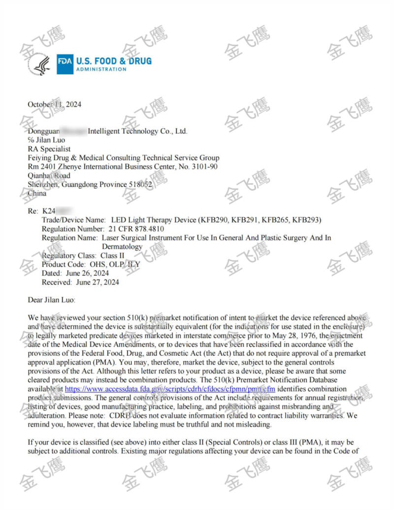 取得雙K號的案例實屬首例,但紅藍光面罩我們此前已積累了不少案例,今年10月,我們輔導的東莞一家企業(yè)成功獲批了紅藍光面罩510(k),2022年也就此類產品宣傳過一次。(戳此回顧→紅藍光面罩)