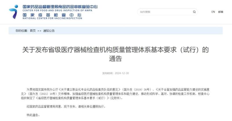 12月31日,國(guó)家藥監(jiān)局食品藥品審核查驗(yàn)中心發(fā)布《省級(jí)醫(yī)療器械檢查機(jī)構(gòu)質(zhì)量管理體系基本要求(試行)》(以下簡(jiǎn)稱《基本要求》),以加強(qiáng)省級(jí)醫(yī)療器械檢查機(jī)構(gòu)質(zhì)量管理體系和能力建設(shè),推動(dòng)形成科學(xué)、高效、協(xié)調(diào)的檢查工作機(jī)制。