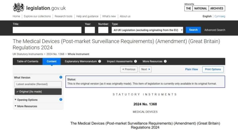 近日,英國MHRA發(fā)布The Medical Devices (Post-market Surveillance Requirements) (Amendment) (Great Britain) Regulations 2024,據介紹,這些法規(guī)條款是對2002年醫(yī)療器械法規(guī)(以下簡稱2002版法規(guī))的修訂,以插入新的上市后監(jiān)督要求。法規(guī)生效日期:2025年6月16日。