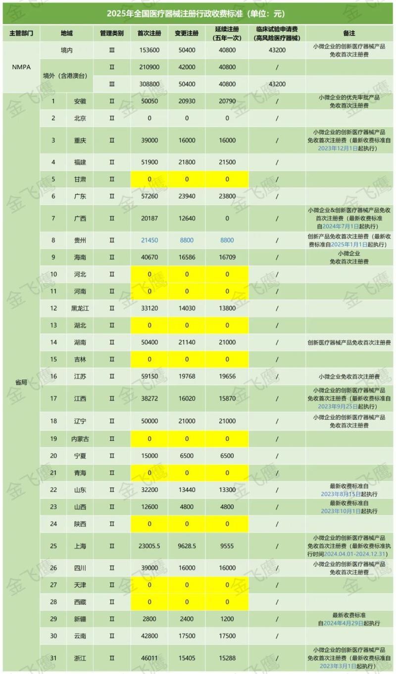 最后依然是按咱們的老規(guī)矩,我們將2025年【全國各省醫(yī)療器械注冊行政收費(fèi)標(biāo)準(zhǔn)】進(jìn)行實(shí)時(shí)更新,具體見下圖,大家記得收藏備用哦!