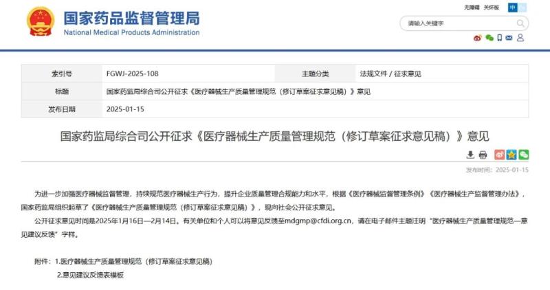1月15日,國家藥監(jiān)局發(fā)布《醫(yī)療器械生產(chǎn)質量管理規(guī)范(修訂草案征求意見稿)》(以下簡稱“新版《規(guī)范》”),并向社會公開征求意見。