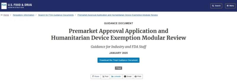FDA發(fā)布PMA&HDE模塊化審核指南文件