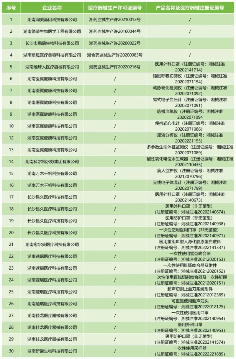 近日,湖南省藥監(jiān)局發(fā)布公告稱,按照《醫(yī)療器械監(jiān)督管理條例》《醫(yī)療器械生產(chǎn)監(jiān)督管理辦法》有關(guān)規(guī)定,根據(jù)企業(yè)申請,現(xiàn)注銷湖南潤美基因科技有限公司等5家企業(yè)的醫(yī)療器械生產(chǎn)許可證;注銷湖南醫(yī)翼健康科技有限公司、長沙昌久醫(yī)療科技有限公司等8家企業(yè)的25個產(chǎn)品的醫(yī)療器械注冊證,具體明細(xì)如下: