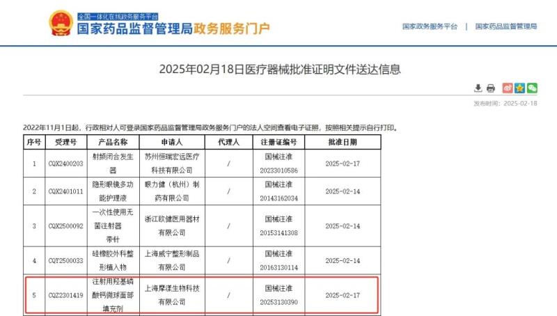 據(jù)悉,該材料在國(guó)外醫(yī)美領(lǐng)域已有使用,但在我國(guó)一直未有完全合規(guī)的相關(guān)產(chǎn)品獲批上市。而此次“注射用羥基磷酸鈣微球面部填充劑”的獲批,不僅填補(bǔ)了這一空白,也為醫(yī)美行業(yè)帶來了新的技術(shù)和產(chǎn)品選擇。