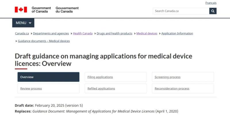 加拿大衛(wèi)生部更新關于管理醫(yī)療器械許可證申請的指南草案