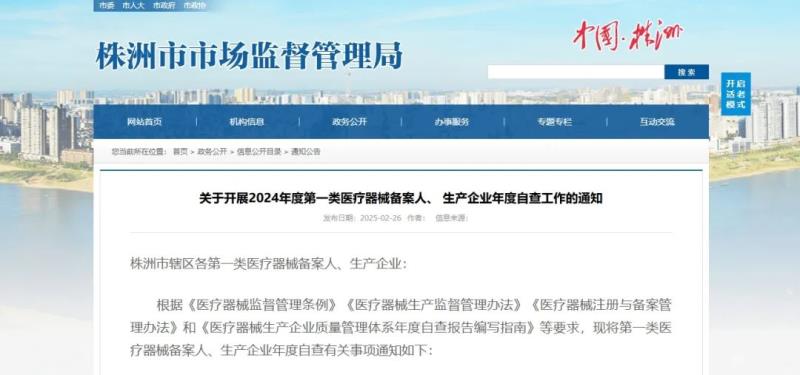 近日,株洲市市場監(jiān)督管理局發(fā)布通知稱,全市范圍內(nèi)第一類醫(yī)療器械備案人、生產(chǎn)企業(yè)應(yīng)當(dāng)于2025年3月31日前向株洲市市場監(jiān)督管理局提交自查報(bào)告。