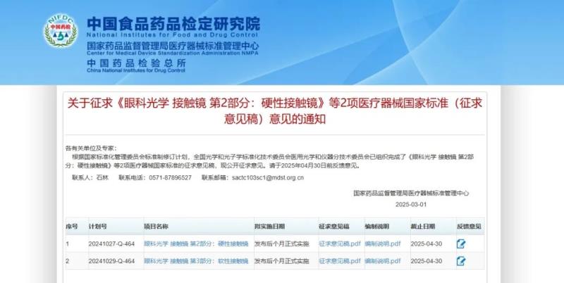 3月1日,國家藥監(jiān)局醫(yī)療器械標(biāo)準(zhǔn)管理中心發(fā)布《眼科光學(xué) 接觸鏡 第2部分:硬性接觸鏡》《眼科光學(xué) 接觸鏡 第3部分:軟性接觸鏡》共2項醫(yī)療器械國家標(biāo)準(zhǔn)的征求意見稿,并向社會公開求意見。