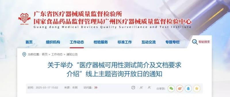 3月17日,廣東省醫(yī)療器械質(zhì)量監(jiān)督檢驗(yàn)所官網(wǎng)發(fā)布通知稱,定于3月21日(周五)舉辦“醫(yī)療器械可用性測試簡介及文檔要求介紹”線上主題咨詢開放日活動,具體時間及參會方式如下: