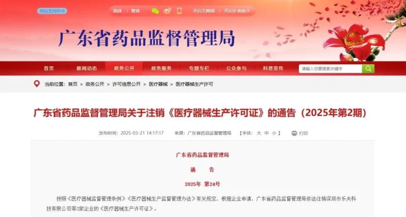 近日,廣東藥監(jiān)局發(fā)布通告稱,按照《醫(yī)療器械監(jiān)督管理條例》《醫(yī)療器械生產(chǎn)監(jiān)督管理辦法》有關規(guī)定,根據(jù)企業(yè)申請,該局已于依法注銷注銷深圳市樂夫科技有限公司、東莞市泰杉科技工業(yè)有限公司等3家企業(yè)的《醫(yī)療器械生產(chǎn)許可證》,具體明細如下: