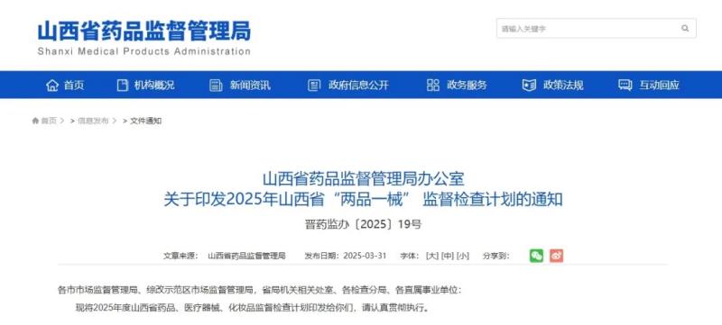《2025年山西省醫(yī)療器械生產(chǎn)企業(yè)監(jiān)督檢查計劃》全文如下:
