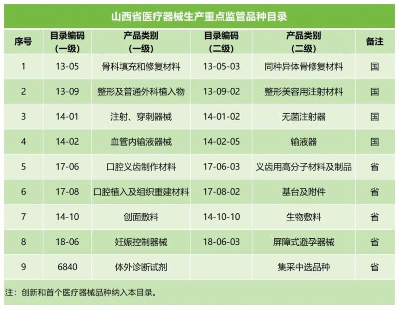 1.國家和省級重點監(jiān)管醫(yī)療器械目錄的產(chǎn)品;