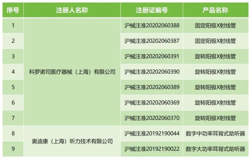 4月21日,上海市藥監(jiān)局發(fā)布通告稱,按照《醫(yī)療器械監(jiān)督管理條例》的規(guī)定,根據(jù)企業(yè)申請,該局已注銷科羅諾司醫(yī)療器械(上海)有限公司等2家企業(yè)共9個產(chǎn)品的醫(yī)療器械注冊證,包括固定陽極X射線管、數(shù)字中功率耳背式助聽器等,具體明細如下:
