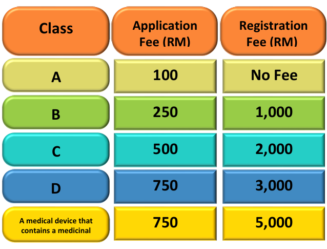 MDA審核時(shí)間視情況而定,大約需要1至6個(gè)月。不同類別的產(chǎn)品收費(fèi)不同,具體費(fèi)用參見下圖。在注冊(cè)通過之后,獲得的注冊(cè)證有效期為五年。