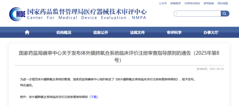 4月22日,國家藥監(jiān)局器審中心發(fā)布《體外膜肺氧合系統(tǒng)臨床評價注冊審查指導(dǎo)原則》(以下簡稱《指導(dǎo)原則》),其中提到,體外膜肺氧合醫(yī)療器械產(chǎn)品分為體外膜肺氧合設(shè)備和體外膜肺氧合器具,可通過同品種臨床評價路徑開展臨床評價,即基于與已上市產(chǎn)品的全面對比,以及科學(xué)設(shè)計的、高質(zhì)量的、可靠的臺架試驗、動物試驗,和/或一定樣本量的臨床試驗開展臨床評價。