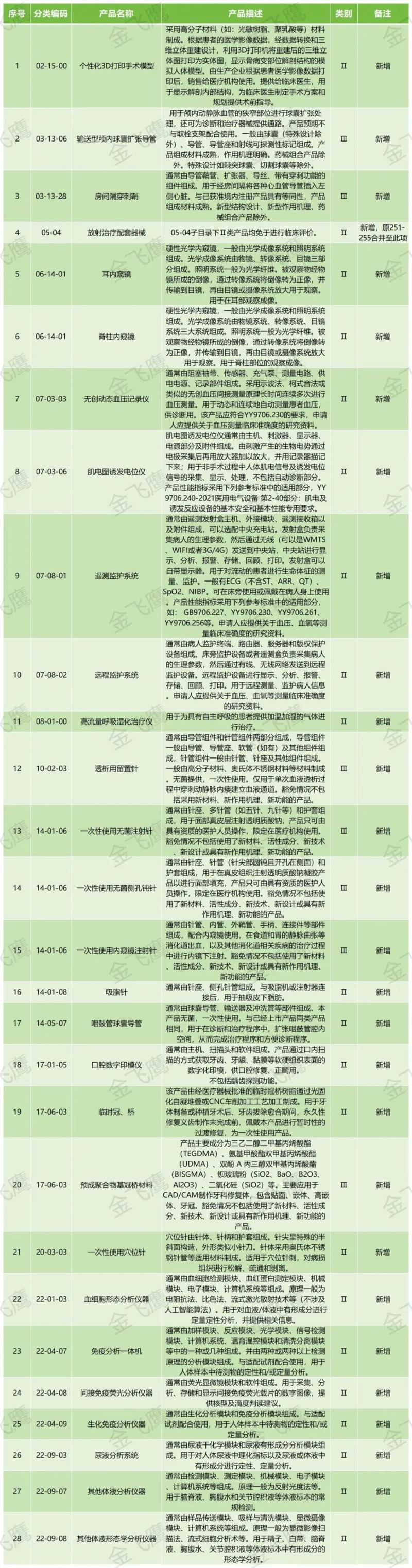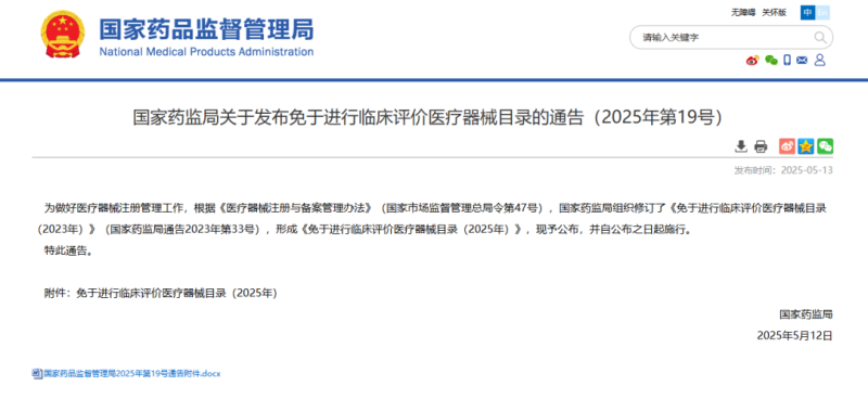 5月13日,國家藥監(jiān)局官網(wǎng)發(fā)布《免于進(jìn)行臨床評價醫(yī)療器械目錄(2025年)》(以下簡稱《目錄》),本次《目錄中共包含1047類(2023年為1025類產(chǎn)品,通過查看附件我們可以發(fā)現(xiàn),本次新增的免臨床產(chǎn)品包括個性化3D打印手術(shù)模型、無創(chuàng)動態(tài)血壓記錄儀、遠(yuǎn)程監(jiān)護(hù)系統(tǒng)、一次性使用無菌注射針(用于面部真皮層注射透明質(zhì)酸鈉)等。由于《目錄》全文字?jǐn)?shù)較多,不便在文章中全部展示,我們僅將本次新增的免臨床評價產(chǎn)品匯總?cè)缦?,以供相關(guān)企業(yè)參考: