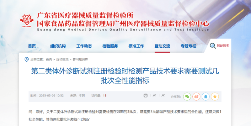 根據(jù)廣東省醫(yī)療器械質(zhì)量監(jiān)督檢驗(yàn)所的答復(fù),二類體外診斷試劑檢測可選擇只做1批全性能,其他兩批做批間差。鑒于試劑注冊(cè)檢驗(yàn)需要配套儀器資料,因此建議待儀器性能注冊(cè)檢測合格后或儀器已經(jīng)過第三方的計(jì)量校準(zhǔn),再申請(qǐng)?jiān)噭┳?cè)檢驗(yàn)。