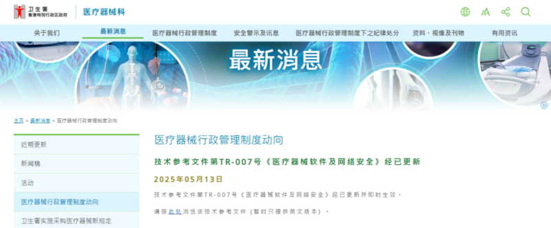 近日,香港衛(wèi)生署醫(yī)療器械科對TR-007號《醫(yī)療器械軟件及網(wǎng)絡(luò)安全》技術(shù)參考文件進(jìn)行更新(2023版的修訂版),本次修訂內(nèi)容如下: