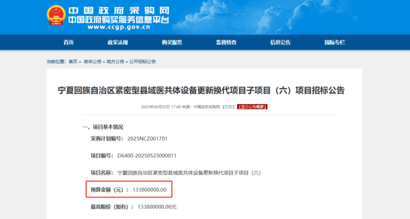 6月2日,中國政府采購網(wǎng)發(fā)布了《寧夏回族自治區(qū)緊密型縣域醫(yī)共體設(shè)備更新?lián)Q代項目子項目(六)項目招標公告》,125臺彩色多普勒超聲診斷儀采購大單啟動。
