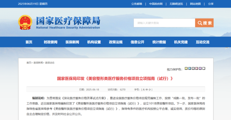 國家醫(yī)保局重磅發(fā)布!統(tǒng)一規(guī)范101項(xiàng)美容整形價格項(xiàng)目