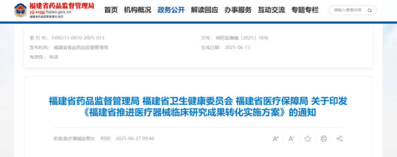 推進(jìn)醫(yī)療器械臨床研究成果轉(zhuǎn)化,福建發(fā)布實(shí)施方案