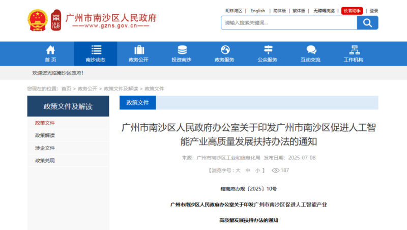 近日,廣州市南沙區(qū)人民政府發(fā)布《廣州市南沙區(qū)促進(jìn)人工智能產(chǎn)業(yè)高質(zhì)量發(fā)展扶持辦法》(以下簡稱《辦法》),從強(qiáng)化人工智能關(guān)鍵要素供給、鼓勵人工智能研發(fā)創(chuàng)新等四方面共提出十六條措施,推動人工智能與實(shí)體經(jīng)濟(jì)深度融合,加快形成技術(shù)引領(lǐng)、場景驅(qū)動、生態(tài)協(xié)同的高質(zhì)量發(fā)展格局,高質(zhì)量推進(jìn)廣州南沙國際數(shù)港建設(shè)。