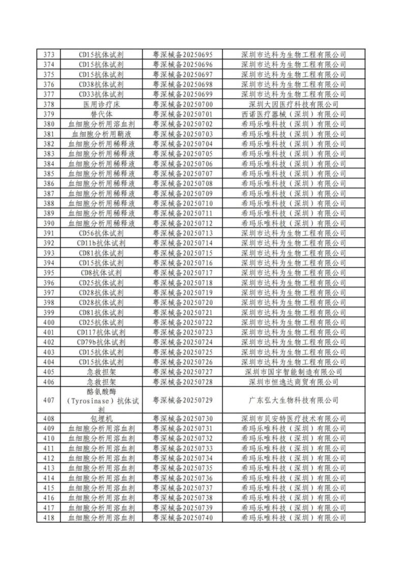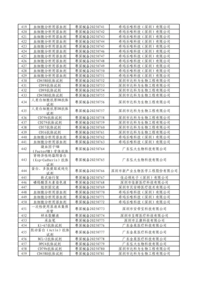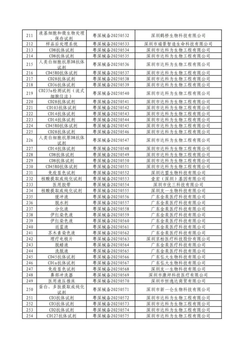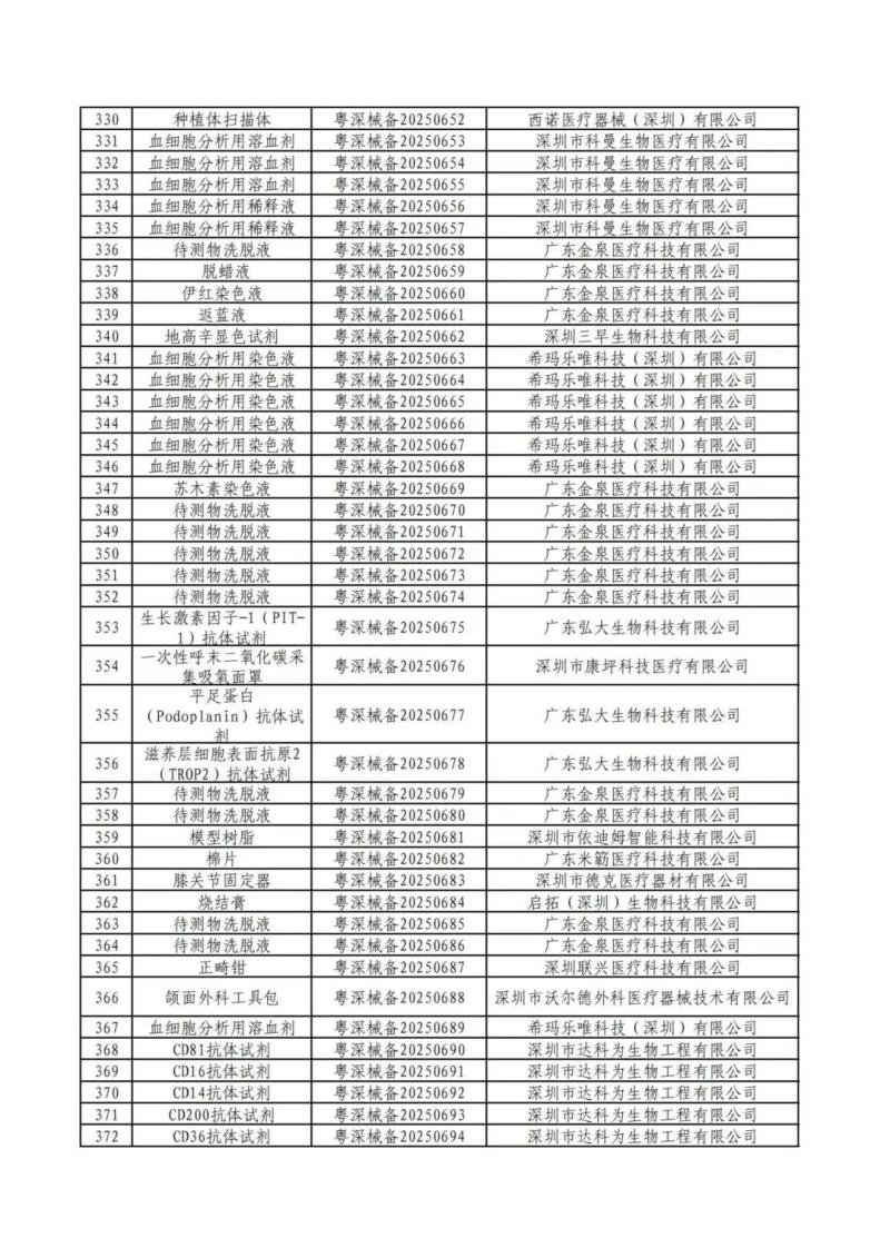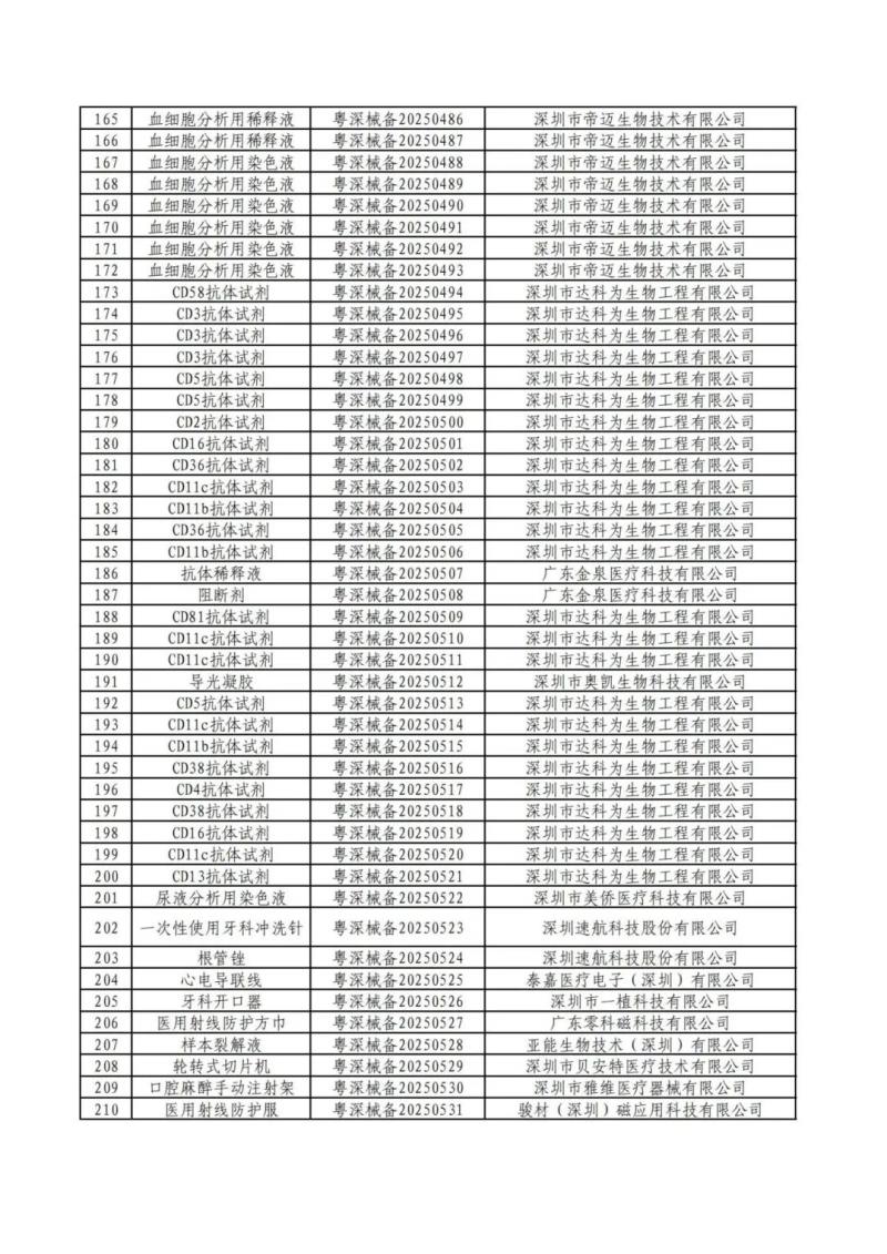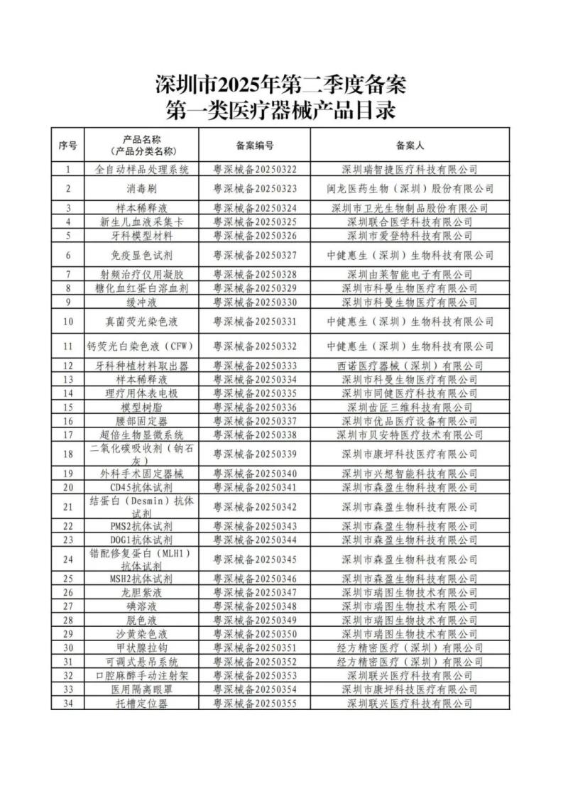 近日,深圳市市場監(jiān)督管理局公布了2025年第二季度備案的第一類醫(yī)療器械產品目錄,包括消毒刷、樣本稀釋液、牙科模型材料、射頻治療儀用凝膠、理療用體表電極、模型樹脂、腰部固定器、免疫顯色試劑、血細胞分析用溶血劑等共計469個產品,具體如下: