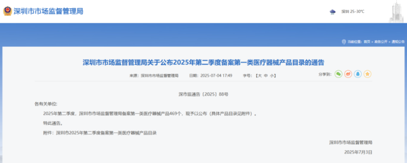 2025年第二季度,深圳共有469個一類醫(yī)械產品完成備案