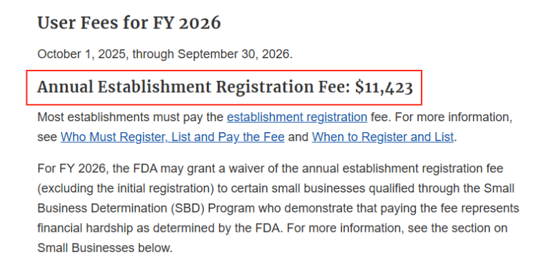 值得注意的是,2026財(cái)年的企業(yè)年費(fèi)的繳納期限為2025年10月1日-12月31日期間,也就是說(shuō),必須在2025年12月31日前完成支付。產(chǎn)品需出口美國(guó)的醫(yī)療器械企業(yè)一定要注意及時(shí)繳納年費(fèi),完成注冊(cè)更新工作,以確保下一年持續(xù)處于有效狀態(tài)。