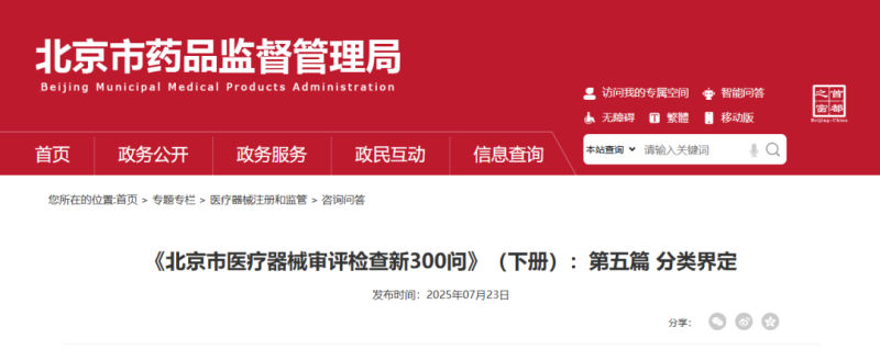 自今年6月以來,北京市醫(yī)療器械審評檢查中心持續(xù)推出了《北京市醫(yī)療器械審評檢查新300問》(下冊),此前我們已轉(zhuǎn)載了有源產(chǎn)品、質(zhì)量管理體系、創(chuàng)新醫(yī)療器械的相關(guān)內(nèi)容,本期文章我們繼續(xù)轉(zhuǎn)載有關(guān)“分類界定”6個咨詢問答,大家別忘收藏備用哦圖片以后若遇到類似問題,只需查一下就能找到答案了~