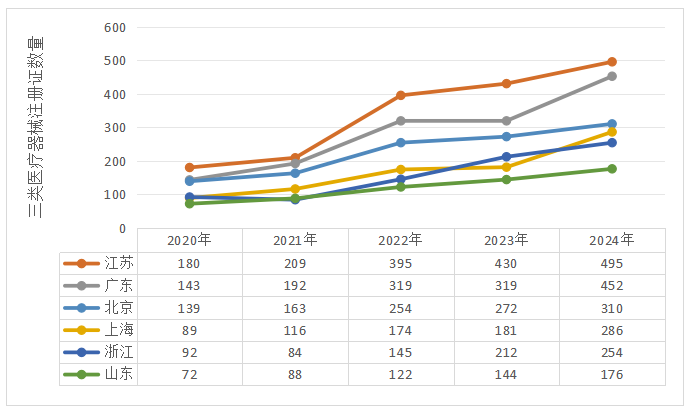 2024年國(guó)家藥監(jiān)局新批準(zhǔn)我省第三類(lèi)醫(yī)療器械注冊(cè)證452個(gè),與2023年相比增加41.7%,居全國(guó)第二。