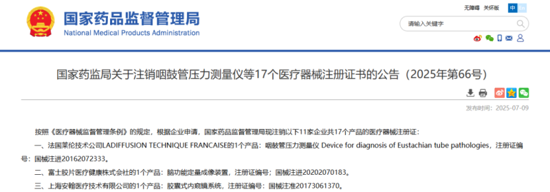江西藥監(jiān)局:以下23張醫(yī)療器械注冊證已被注銷!