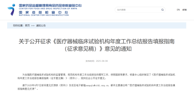 為統(tǒng)一年度報告填報格式,規(guī)范填報內(nèi)容,保證填報質(zhì)量,為臨床試驗監(jiān)督管理提供客觀、準(zhǔn)確、高質(zhì)量數(shù)據(jù),近日,國家藥監(jiān)局核查中心發(fā)布《醫(yī)療器械臨床試驗機構(gòu)年度工作總結(jié)報告填報指南(征求意見稿)》(以下簡稱《指南》),并向社會公開征求意見。
