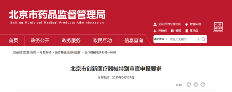 近日,北京市藥監(jiān)局發(fā)布《北京市創(chuàng)新醫(yī)療器械特別審查申報(bào)要求》,我們將其轉(zhuǎn)載如下,以供有創(chuàng)新申報(bào)需求的企業(yè)參考:
