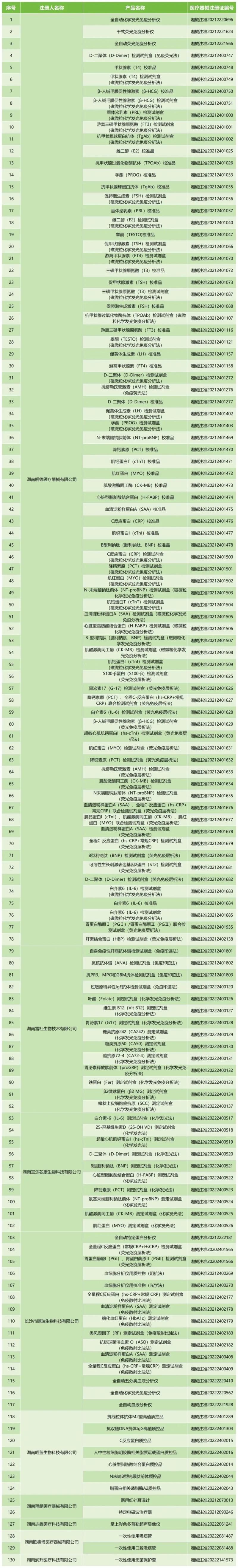 8月25日,湖南省藥監(jiān)局發(fā)布一則醫(yī)療器械注冊(cè)證注銷公告,公告顯示,局已依法注銷湖南明德醫(yī)療器械有限公司、湖南雷杜生物技術(shù)有限公司、湖南宜樂(lè)芯康生物科技有限公司、長(zhǎng)沙市鵬瑞生物科技有限公司9家企業(yè)共計(jì)130個(gè)產(chǎn)品的醫(yī)療器械注冊(cè)證,以IVD產(chǎn)品居多,其中湖南明德醫(yī)療器械有限公司這一家企業(yè)共注銷了78款產(chǎn)品(含體外診斷設(shè)備及體外診斷試劑),其他企業(yè)注銷的產(chǎn)品包括醫(yī)用紅外耳溫計(jì)、特定電磁波治療器、掌上彩色多普勒超聲顯像儀等,具體明細(xì)如下:
