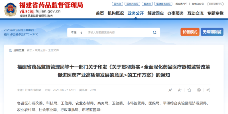 福建藥監(jiān)局發(fā)布24條新政,推動(dòng)醫(yī)藥產(chǎn)業(yè)高質(zhì)量發(fā)展?
