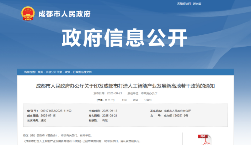 成都市打造人工智能產(chǎn)業(yè)發(fā)展新高地若干政策