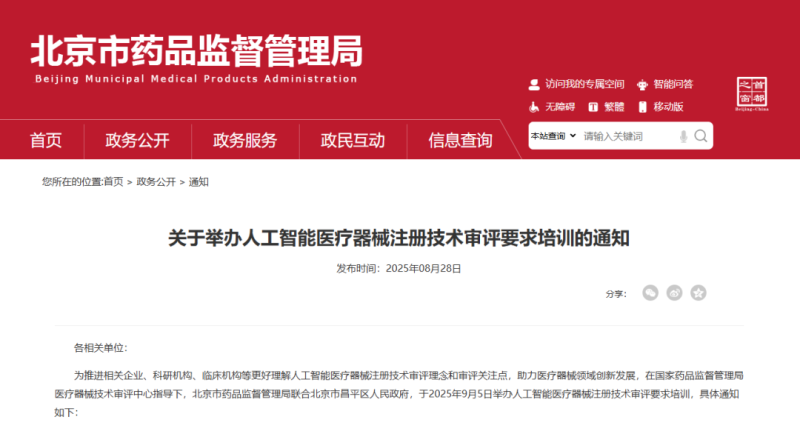 近日,北京市藥監(jiān)局發(fā)布通知,定于9月5日(周五)舉辦“人工智能醫(yī)療器械注冊技術(shù)審評要求培訓(xùn)”,具體時(shí)間及參會(huì)方式如下: